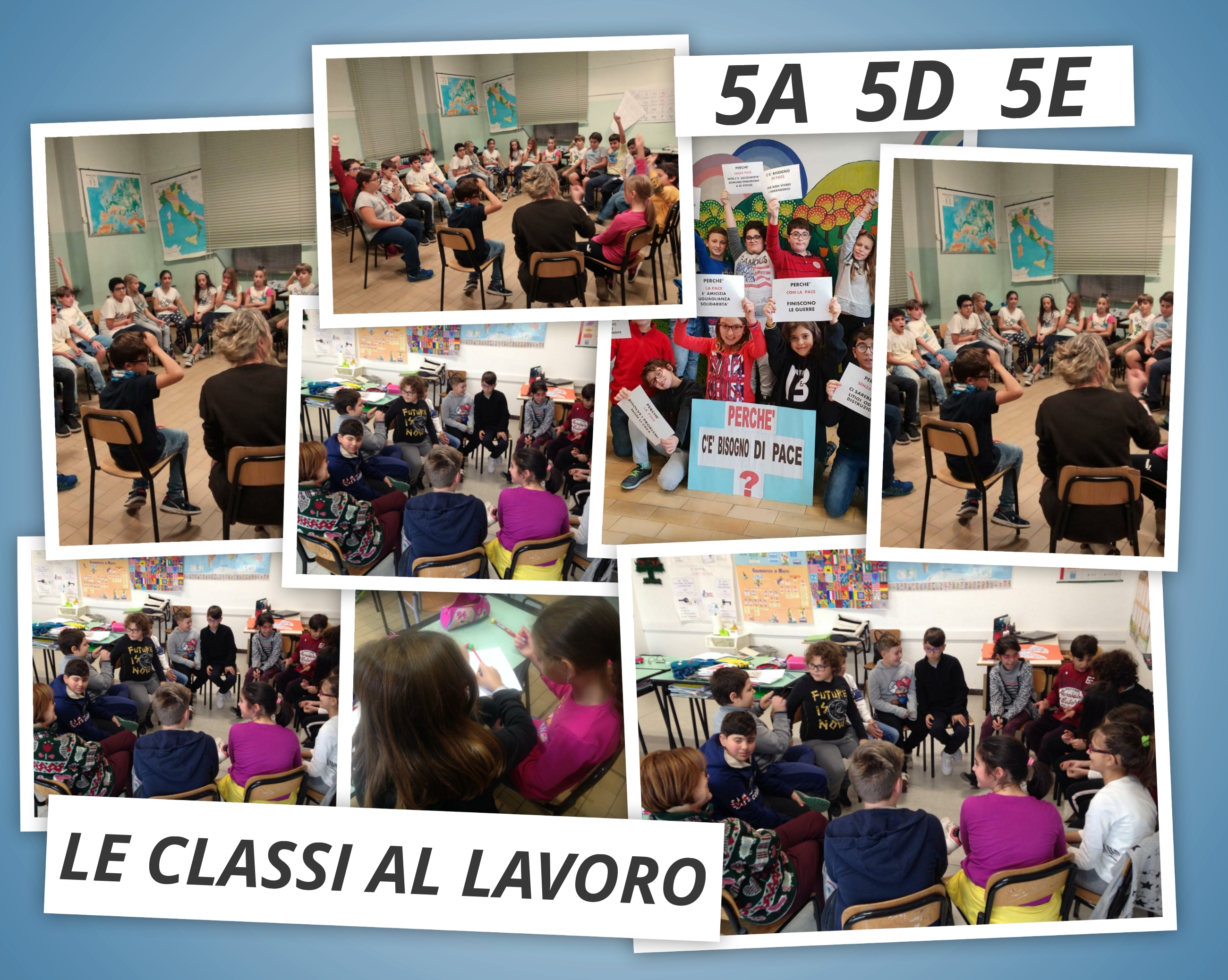 In classe riflettono sull'articolo 11 della Costituzione e concludono che per guerra non si deve intendere solo un conflitto armato tra eserciti: la guerra è vivere dove c’è la violenza, l’ingiustizia, la povertà, il razzismo, l’indifferenza, quindi è nell’interesse di tutti vivere in pace e fratellanza e ciascuno si deve sentire impegnato a cercarla, rispettarla e mantenerla, nel suo piccolo. La pace è indispensabile per vivere e cercano una legge che garantisca a tutti il diritto di vivere nella Pace. Fanno ricerche e letture su Emergency e sulla sua attività, analizzano il Guernica di Picasso e rilevano che la Dichiarazione Universale dei Diritti Umani del 1948 è stata negli anni largamente inapplicata e vorrebbero più tempo a scuola per parlare di pace. Propongono quindi di inserire come materia nei programmi scolastici l'"Educazione alla pace" tra i cui articoli troviamo: istituire un indirizzo di laurea per “Educatori alla Pace” al fine di formare insegnanti (formazione obbligatoria), operatori sociali e culturali, ricercatori; approfondire nelle scuole gli argomenti di Storia Contemporanea (colonialismo, guerre mondiali…) e la conoscenza dei disastri che provocano le guerre per capire meglio la storia presente e imparare a non ripetere gli errori del passato; istituire premi e borse di studio per progetti e iniziative volte alla diffusione della cultura della Pace, dei progetti di disarmo, di attività che mirino alla convivenza pacifica tra i popoli, alla non violenza su donne e sulle categorie “deboli”.