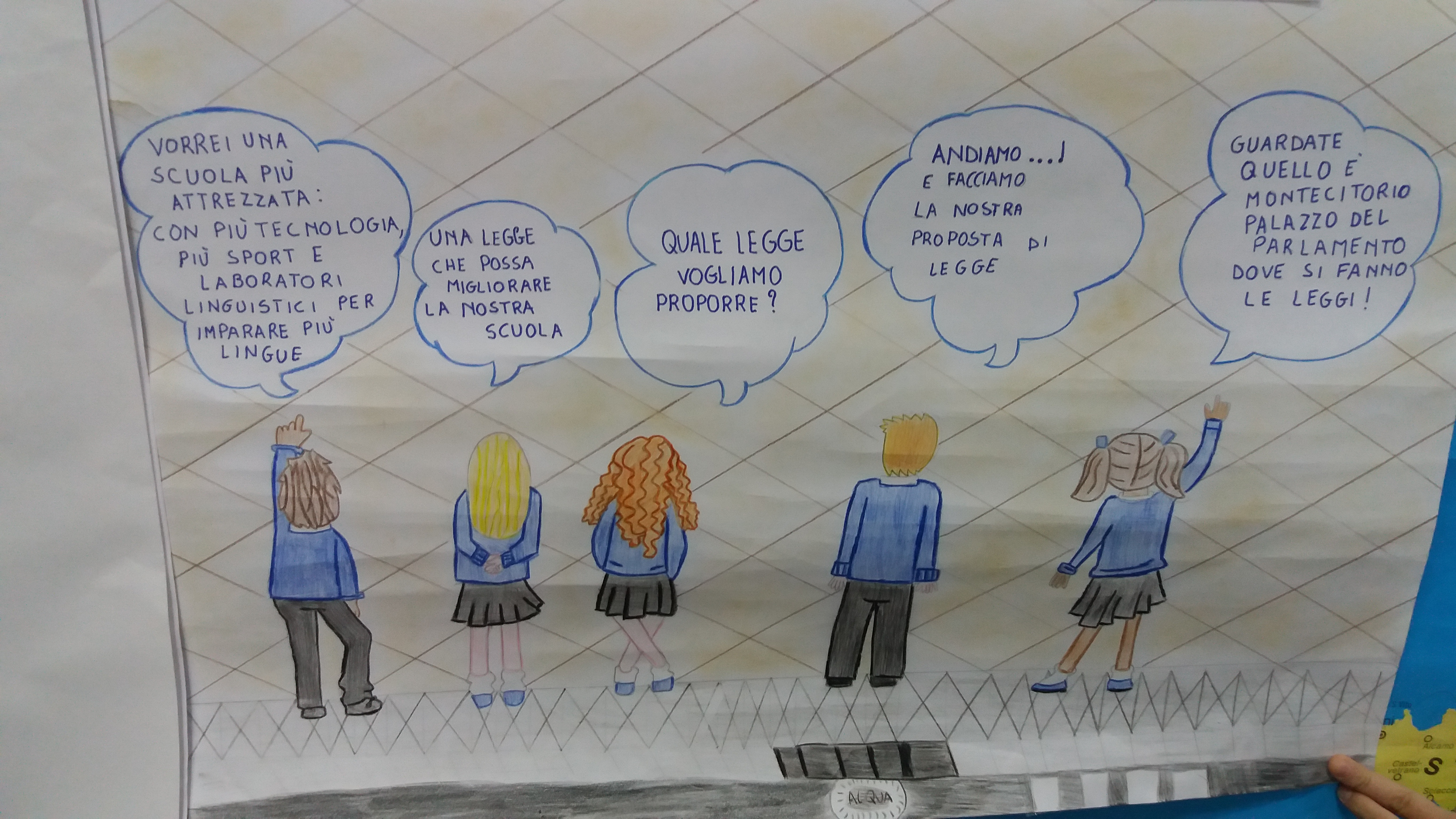 Gli alunni in classe hanno letto, discusso e commentato delle letture riguardanti l'organizzazione delle scuole in alcuni Paesi del mondo. Sono stati subito attratti dalle diverse usanze, modi di vivere, di pensare e di agire, sia degli alunni, sia degli insegnanti, che poi hanno confrontato con le loro e con quelle della loro scuola. Proprio partendo da tale studio, e dopo aver ampiamente discusso in merito, hanno pensato di elaborare una proposta di legge dal titolo “Disposizioni per una scuola migliore” che potesse migliorare la loro scuola, l'ambiente in cui studiano e l'offerta formativa per gli studenti che la frequentano. Tra gli articoli proposti troviamo: aumento degli strumenti tecnologici, creazione di laboratori linguistici e scientifici, istituzione del regime a tempo pieno, aumento delle ore di educazione musicale e motoria per apprendere uno strumento musicale e le discipline sportive, diminuzione dei compiti per casa aumentando le attività svolte in classe con l’insegnante.