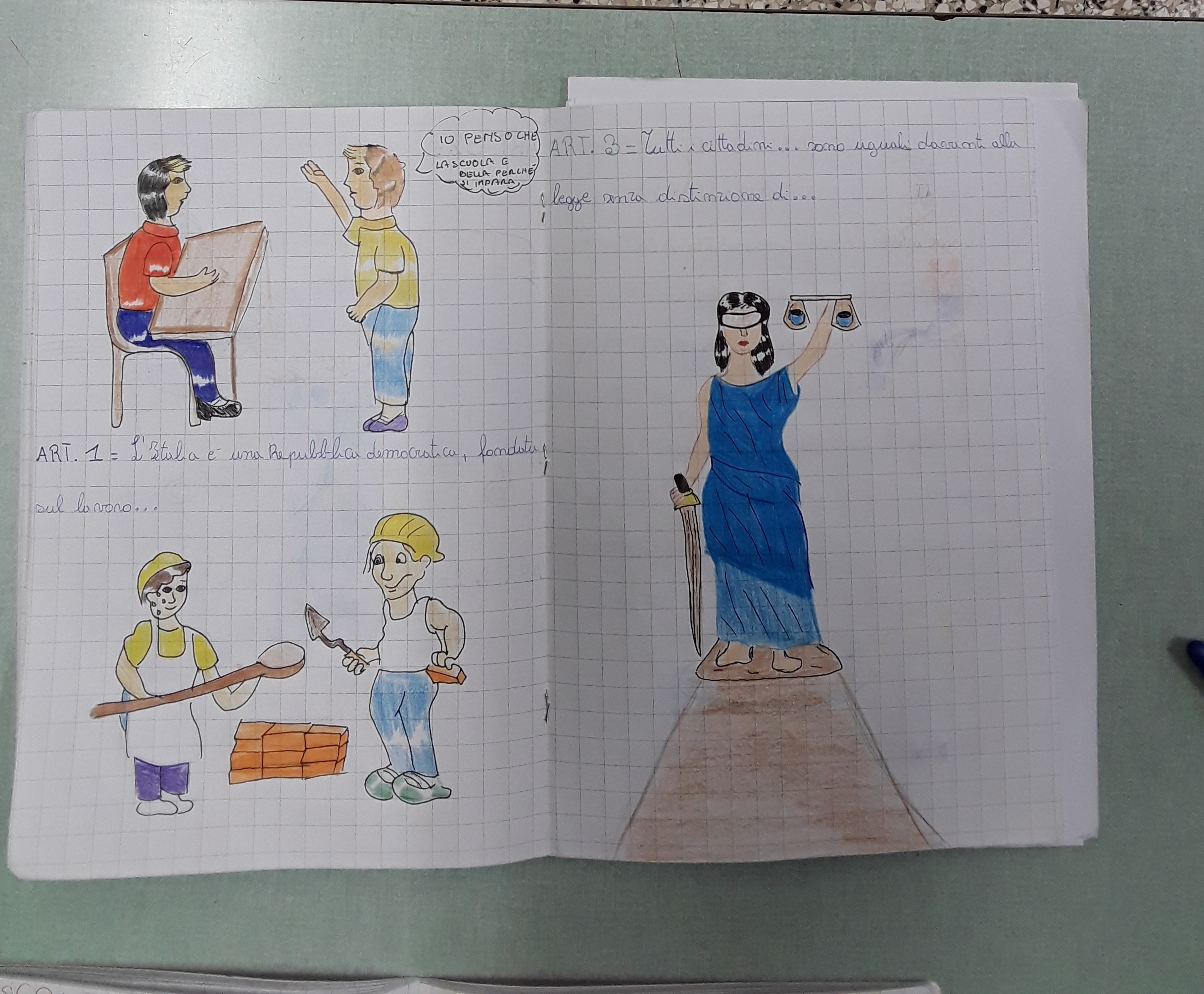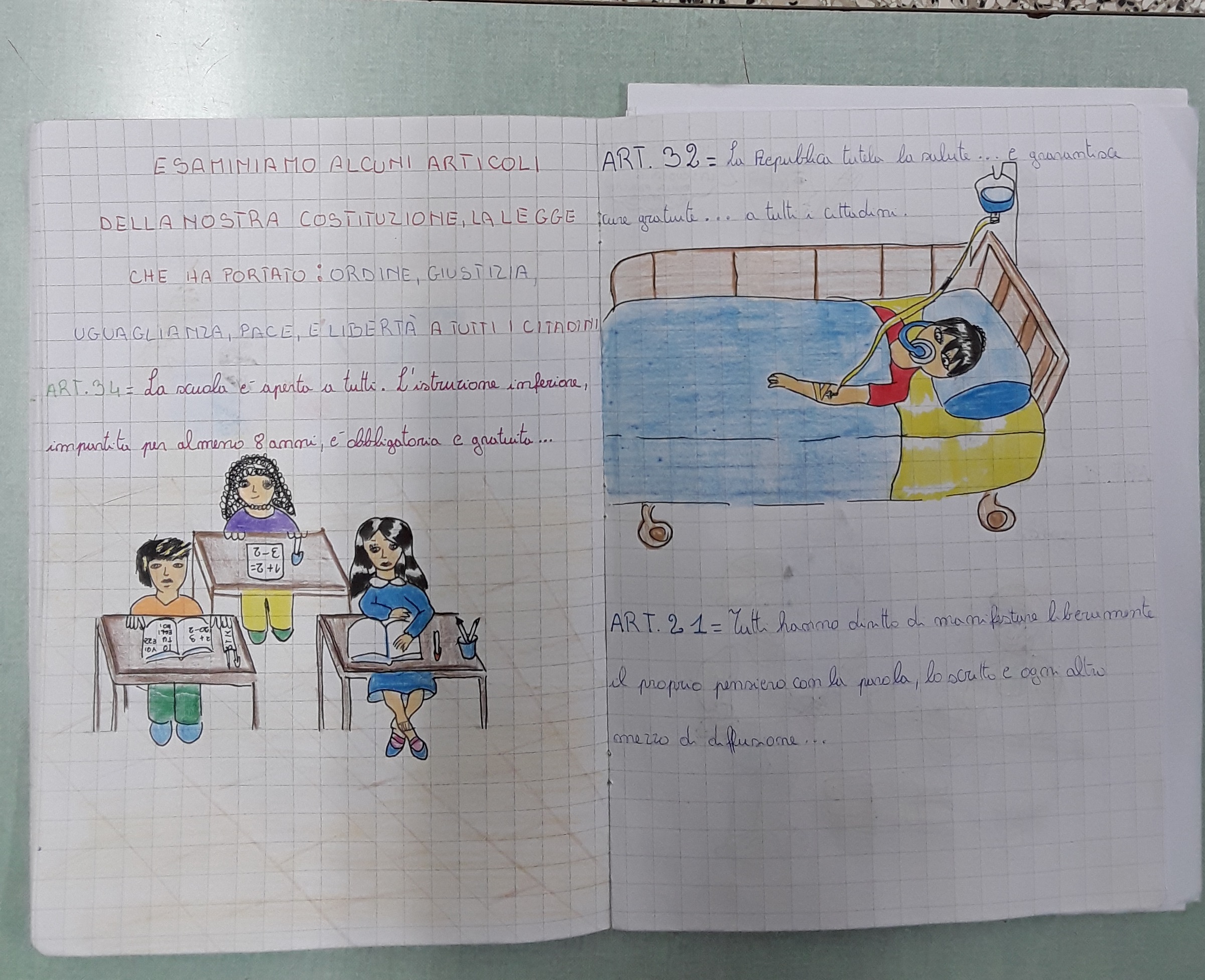 Lo spunto per la stesura del disegno di legge parte da una domanda analizzata in classe: "Proviamo ad immaginare che voi bambini possiate abolire tutte le regole che si devono seguire a scuola. Cosa succederebbe?". Probabilmente all’inizio sembrerebbe bellissimo non avere limiti: entrare all’ora che si vuole, fare un lunghissimo intervallo, parlare durante le lezioni, ecc. Senza regole, gli alunni avrebbero sicuramente più libertà. Ma in una scuola senza regole, anche gli insegnanti potrebbero decidere di agire come vogliono: possono per esempio interrogare a sorpresa, oppure impedire agli studenti di fare la merenda Davanti a questa possibilità, gli studenti hanno capito che senza alcuna regola la loro libertà non aumenterebbe affatto; anzi, non essendo più garantita in misura uguale per tutti dalle regole stesse, sarebbe messa a rischio. Le regole possono sembrare un limite alla libertà perché non permettono di fare tutto quello che si vorrebbe ma in realtà non servono soltanto a stabilire dei doveri, ma anche a garantire dei diritti; ad esempio il dovere di andare a scuola contiene il diritto all’istruzione. Attraverso le regole, tutti i cittadini sono tutelati allo stesso modo: godono degli stessi diritti e hanno uguale libertà e la Costituzione è stata analizzata proprio come strumento per costruire una società libera e democratica. Per questo, affermano i bambini, tutti dobbiamo rispettarla, perché se non rispettassimo le sue regole, che garantiscono la pari dignità e l’uguale valore di tutti, la nostra libertà non sarebbe più tutelata. Ed è per lo stesso motivo che scrivono un disegno di legge che propone di dare maggiore centralità all’insegnamento di Cittadinanza e Costituzione, che va vissuta e sentita come nostra per favorire la formazione di cittadini responsabili in una società in continua trasformazione; e perché risulti accessibile anche ai bambini ne semplificano il lessico riscrivendo alcuni articoli illustrandoli e con un testo semplificato.