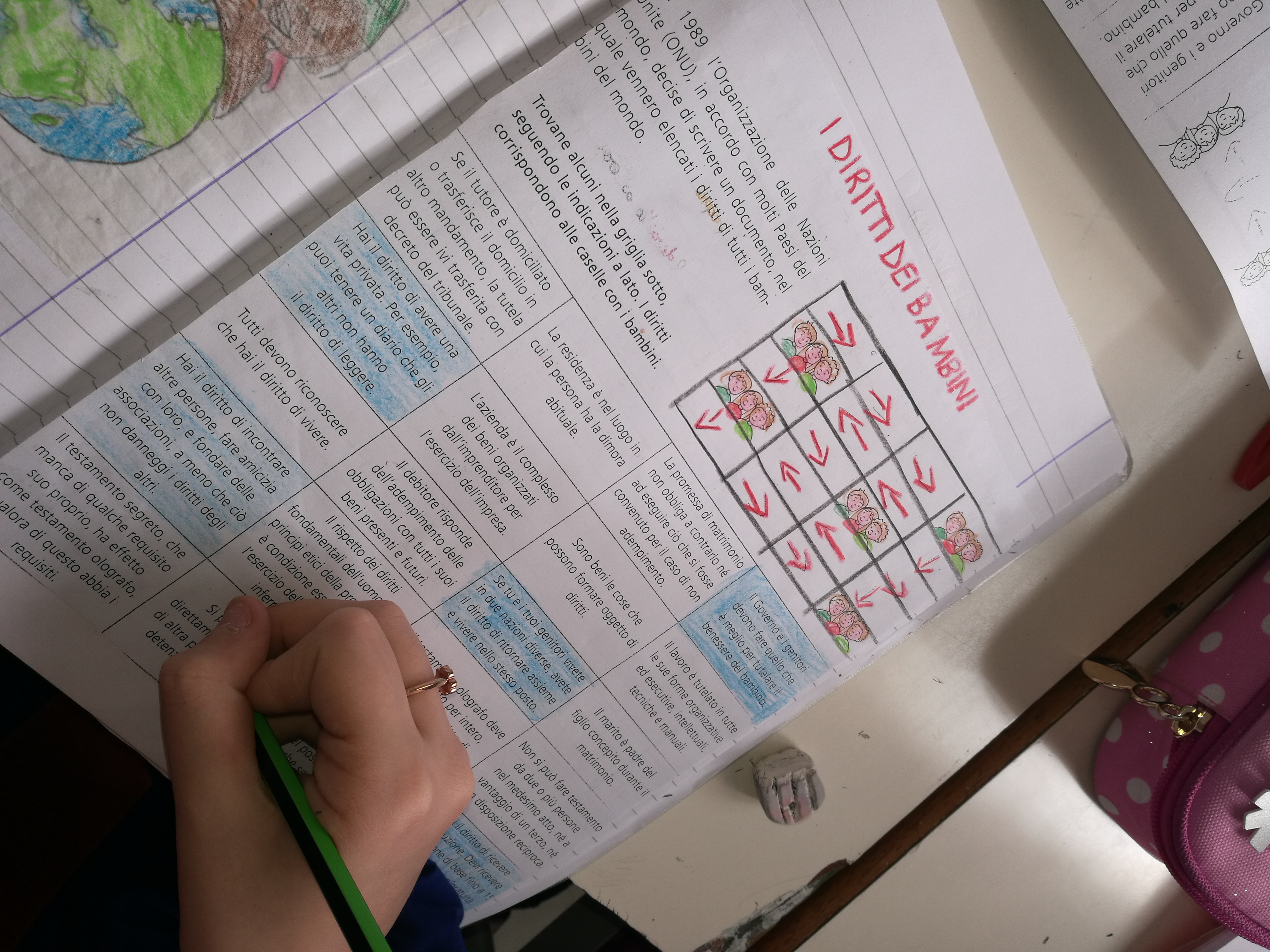 Da letture e approfondimenti svolti in classe (Dichiarazione Universale dei Diritti Umani, Convenzione internazionale sui diritti del fanciullo, la Nuova carta dei diritti della bambina) nasce nei bambini l’idea di proporre una legge su “un ciclo di vita”, quello della donna, da tutelare in tutte le fasi della sua vita in quanto troppo spesso oggetto di maltrattamenti. Tra le disposizioni proposte troviamo ad esempio: tutte le bambine hanno il diritto, fin dalla nascita, di godere degli stessi diritti di cui gode ogni bambino; non è ammessa nessuna forma di discriminazione; tutte le bambine devono godere del diritto all’istruzione; l’aspetto fisico, le difficoltà nell’apprendimento o le condizioni economiche non devono costituire motivo discriminante; non è ammissibile imporre un matrimonio di alcun tipo; ogni donna ha il diritto di conservare il posto di lavoro quando è in attesa di un bambino e non può essere licenziata, né penalizzata in alcun modo. Gli articoli del disegno di legge sono illustrati da tanti bei disegni dei bambini.