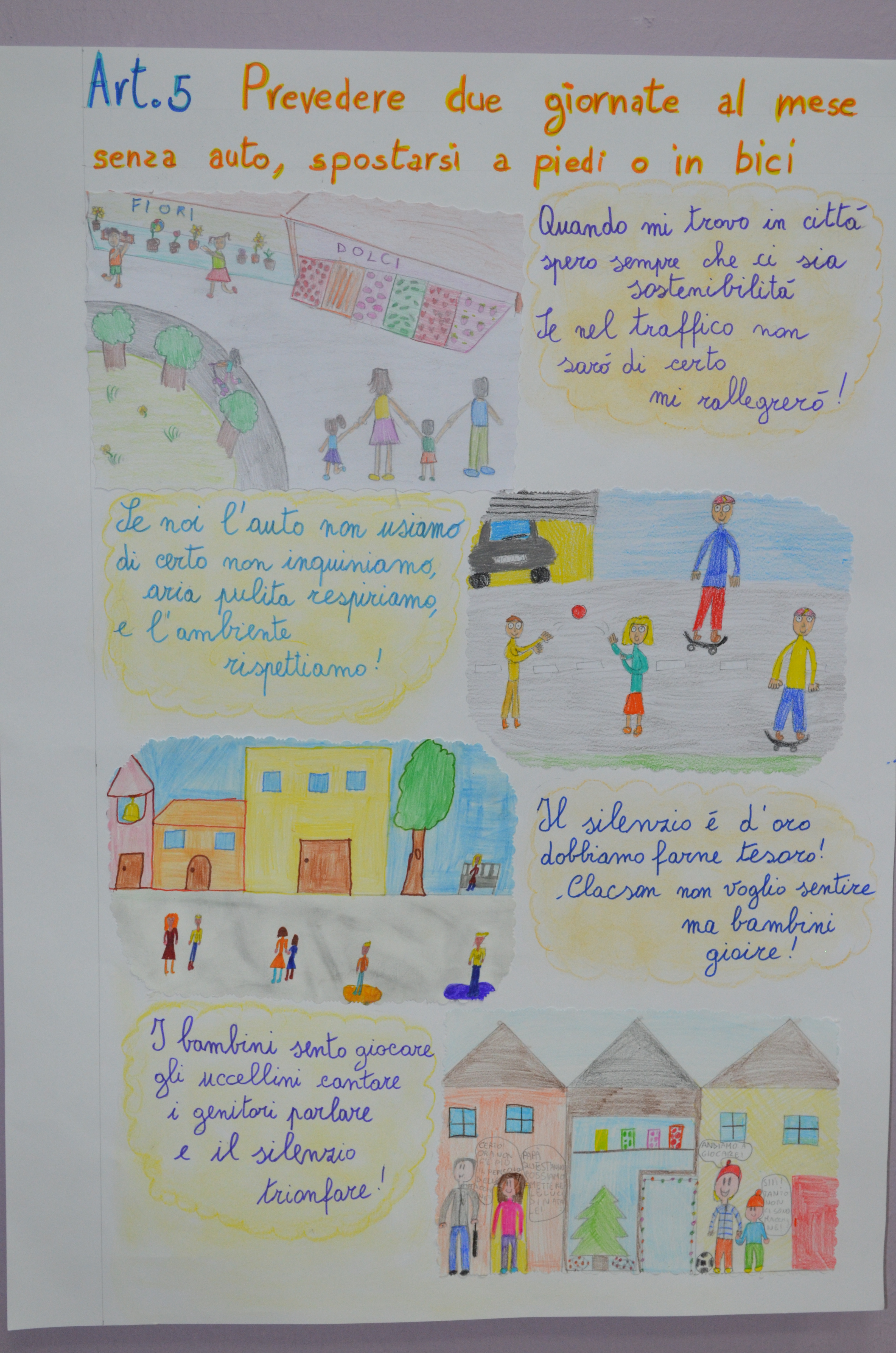 Il disegno di legge nasce dall'esigenza, molto sentita dagli alunni, di poter fruire di spazi a misura di bambino che sentono carenti nella loro città. Prevedono quindi delle disposizioni legislative che possano offrire soluzioni concrete a questa necessità; ad esempio prevedono misure per il recupero del verde pubblico, per rendere più accogliente e più vivibile la loro città, istituiscono delle "giornate senza auto" e una festa dedicata alla natura (la festa degli alberi). Illustrano e completano la stesura del disegno di legge con tanti bei cartelloni, fumetti, filastrocche in rima e filmati.